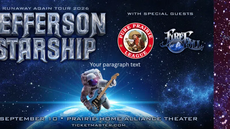 JUST ANNOUNCED! Jefferson Starship is bringing their Runaway Again Tour to the Prairie Home Alliance Theater on September 10th! Get ready to rock with these legends! Who's excited to hear some classic hits? You're ready to blast off with Jefferson Starship! PCC Insider Presale starts Thursday, Feb 12 & Tickets ar...