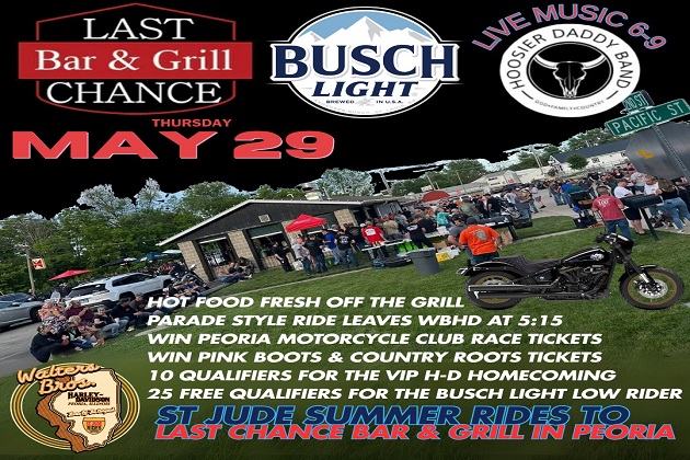 We Ride To Last Chance Bar & Grill this Thursday Night! St Jude Summer Rides!